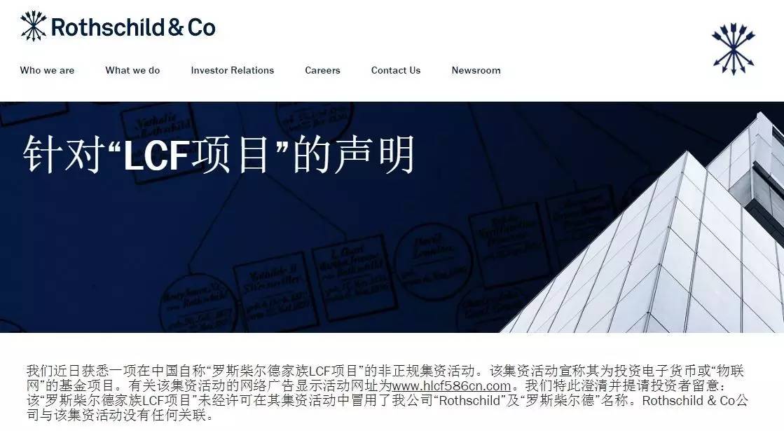 洛希爾集團就羅斯柴爾德家族LCF項目再次警示中國公眾
