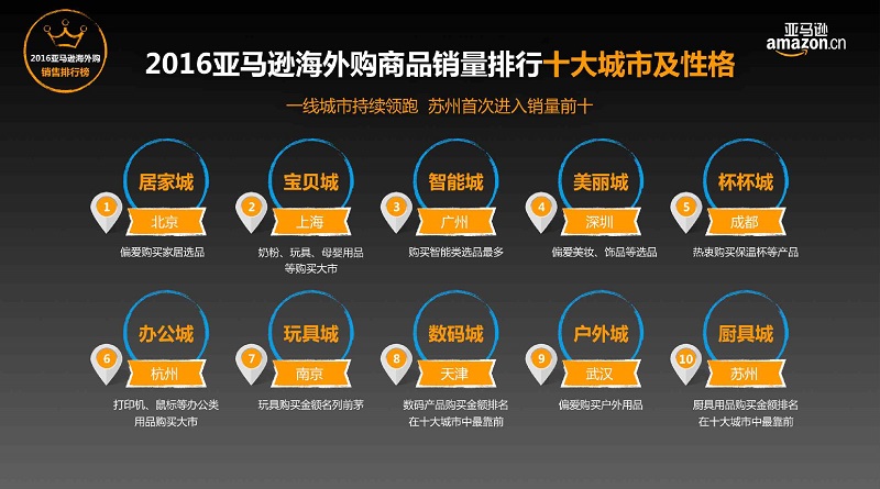 報告基于對亞馬遜海外購海量數據的深入解析以及消費者行為調查,總結出中國跨境網購消費的四大特征與趨勢,即跨境網購愈發普及并常態化、跨境網購人群年輕化、跨境網購更趨品質化和免費跨境配送釋放消費潛力。從地域分布來看,一線城市依然是領頭羊,且以南方城市為主。服裝、鞋靴是最受中國消費者歡迎的兩大品類。最受中國消費者歡迎的品牌為Calvin Klein。(美通社,2017年1月10日北京)