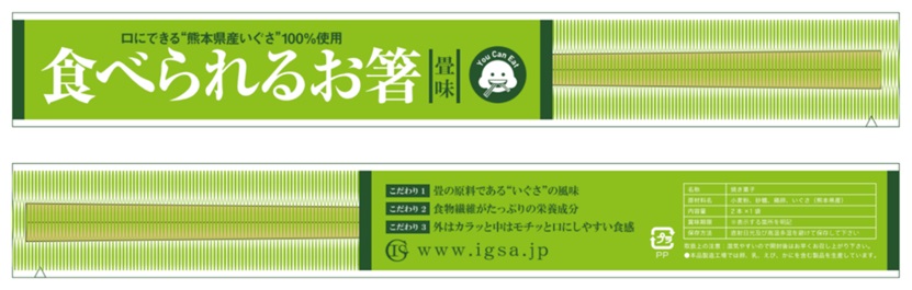 通過利用熊本縣的優(yōu)質(zhì)可食用IGSA蘭草,Kumamoto IGSA & Tatami Conference研制出了Tatami(榻榻米)味的可食用筷子。IGSA不僅可安全食用,也是含有大量膳食纖維的高營養(yǎng)植物,其食物纖維相當于60顆生菜里纖維的總和(每100克)。透過一雙筷子就可以攝入與一碗沙拉同樣多的膳食纖維。(美通社,2017年5月2日日本熊本)
