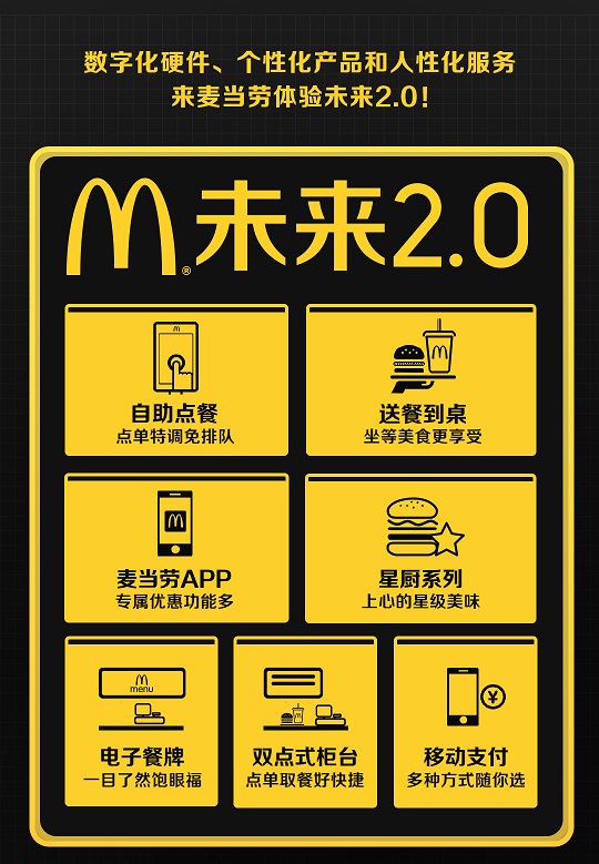 麥當勞中國宣布,全國逾1000家餐廳完成“未來2.0”升級,整合數字化、個性化和人性化的軟硬件,全面提升顧客的用餐體驗。“未來2.0” 涵蓋了自助點餐、移動支付、以及全新推出的送餐到桌和“星廚系列”漢堡等七大元素。“未來2.0”現階段覆蓋的城市包括:北京、上海、廣州、深圳、武漢、成都、福州、泉州、杭州、東莞、廈門、南京、汕頭;預計2017年底,全國近1600家餐廳將完成相關升級。在推進“未來2.0”的變革中,為了更貼心地服務顧客,麥當勞中國今年特地在全國餐廳增設品牌大使的崗位,為顧客提供溫馨照顧、送餐到桌和派對主持等服務。(美通社,2017年5月15日上海)