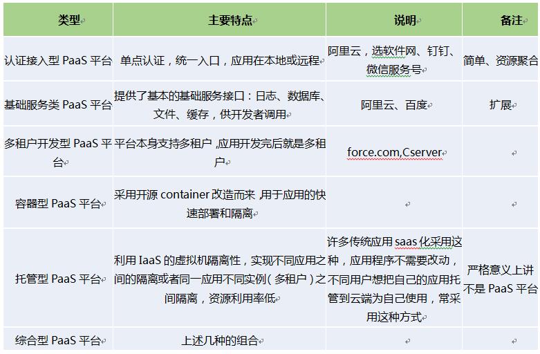 在趙子奇看來,根據其本身的特性,PaaS平臺可以分為不同的類型。比較常見的有認證接入型PaaS平臺、基礎服務類PaaS平臺、多租戶開發型PaaS平臺、容器型PaaS平臺、托管型PaaS平臺,以及提供綜合服務能力的綜合型PaaS平臺。