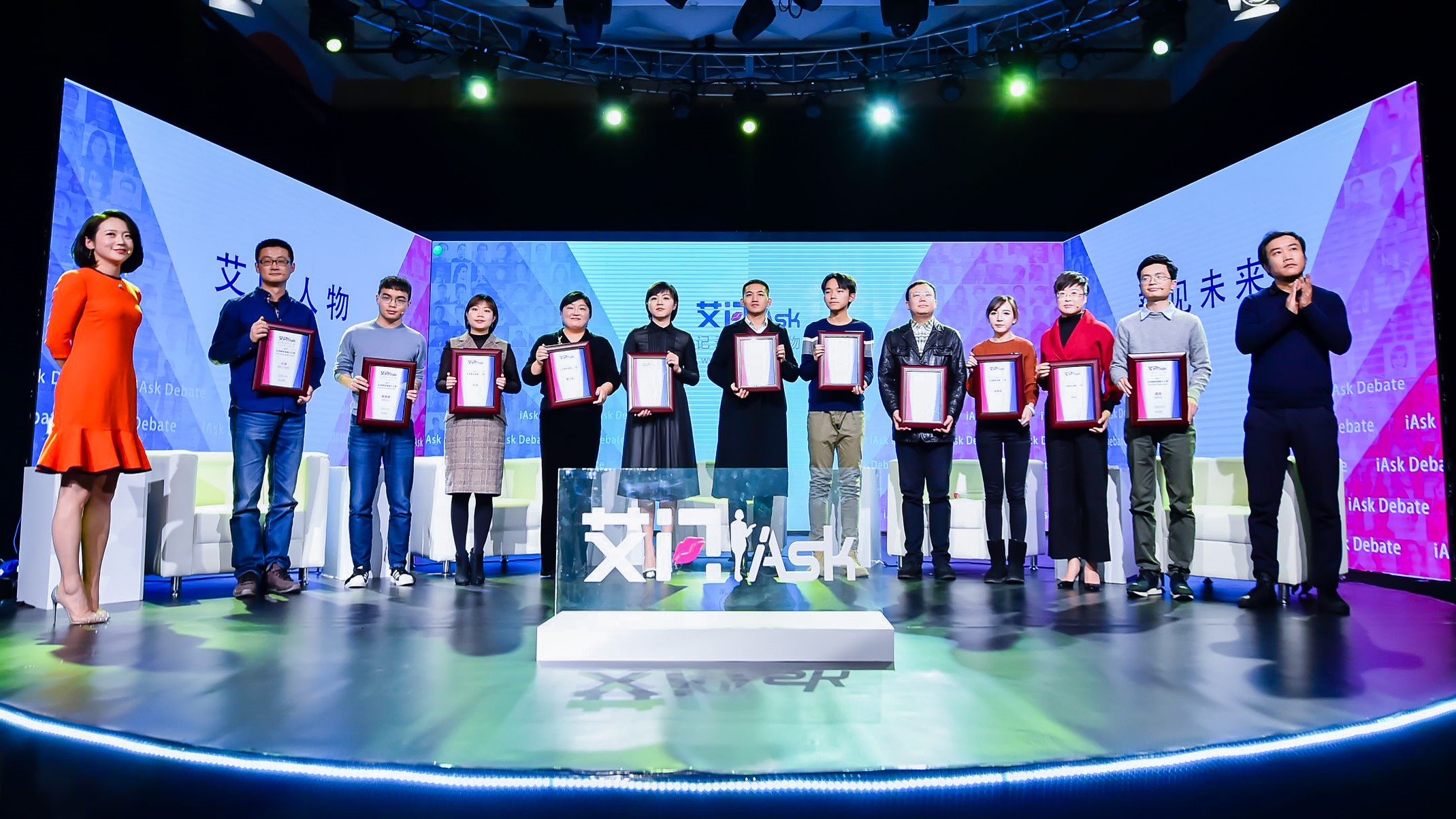 4位嘉賓就此展開了精彩激辯,100多位觀眾參與現場投票,30萬在線艾草(艾問人物的粉絲)通過網易直播、一直播、優酷直播參與互動,新榜創始人徐達內作為評論嘉賓現場點評。在節目錄制的最后,艾問人物發布了“2017年艾問未來媒體影響力人物”,并進行了頒獎。