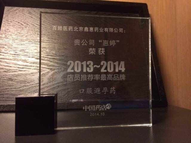 經過權威的問卷調查,透明的公開評選及嚴格的逐級審核,本次峰會隆重揭曉了“店員推薦率最高品牌”、“中國連鎖藥店百強”、“年度人物百強”、“醫藥電商十強”、“十大金牌店長/店員”等獎項。惠婷®系列產品——榮獲口服避孕藥類“年度店員推薦率最高品牌”。這一殊榮既是市場對百睦鑫惠公司實力的絕對認可,也是消費者對我們藥品品質的最佳肯定。惠婷®將一如既往為終端藥店及廣大用戶提供一流的產品和服務,全力打造“生殖健康技術專家”及“計生行業領導者”的公司形象。