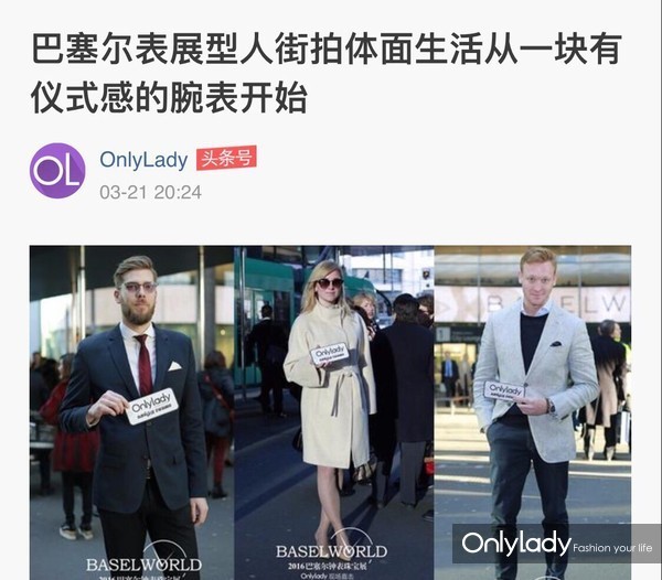 腕表是商務(wù)場合的必備單品,OnlyLady針對這一職場人士巨大的需求,特別派出精英團(tuán)隊(duì)在報(bào)道前線打造巴塞爾表展精致商務(wù)街拍,倡導(dǎo)“體面生活從一塊腕表開始”的理念