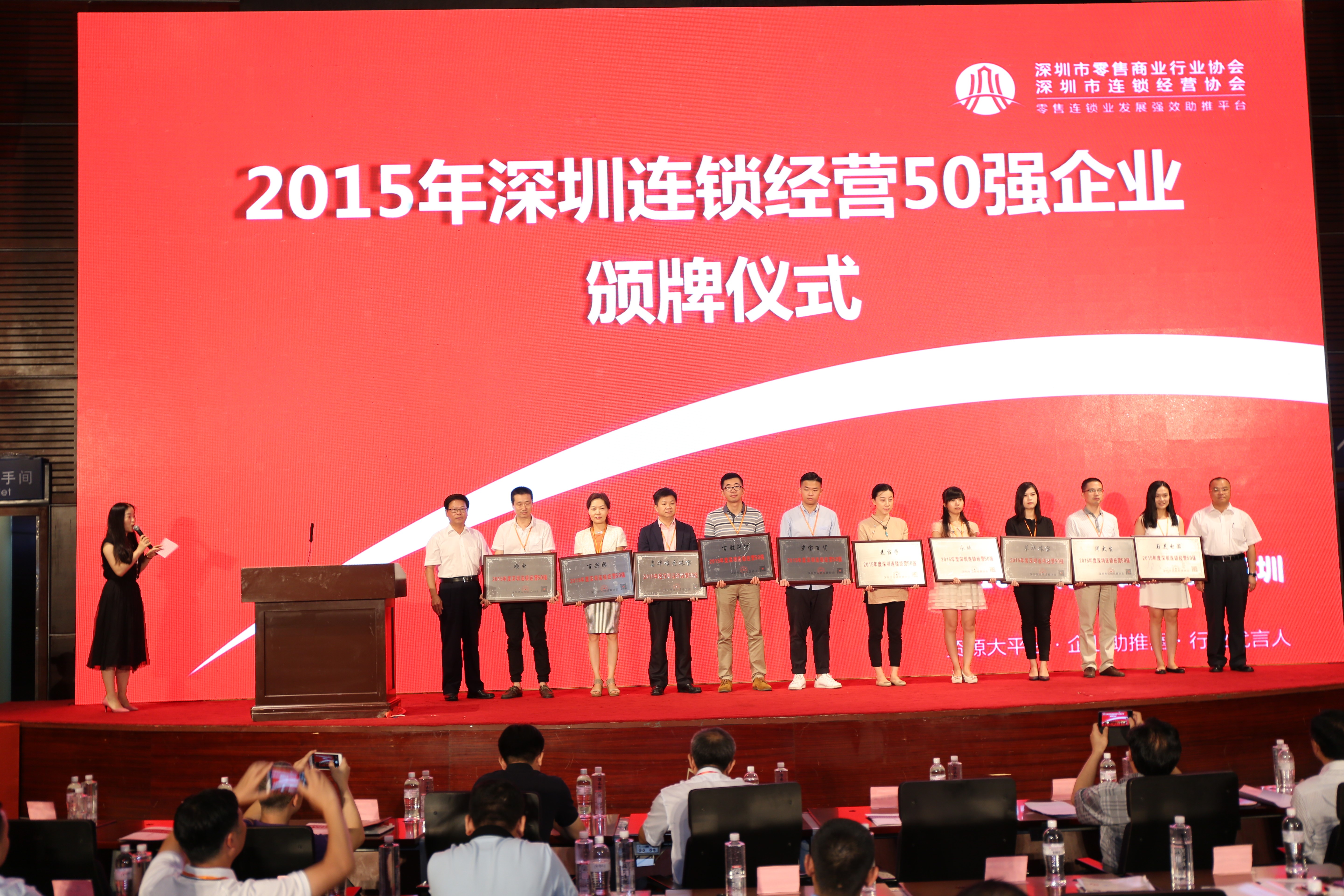 現(xiàn)場(chǎng)為2015年度深圳連鎖經(jīng)營(yíng)50強(qiáng)企業(yè)頒牌
