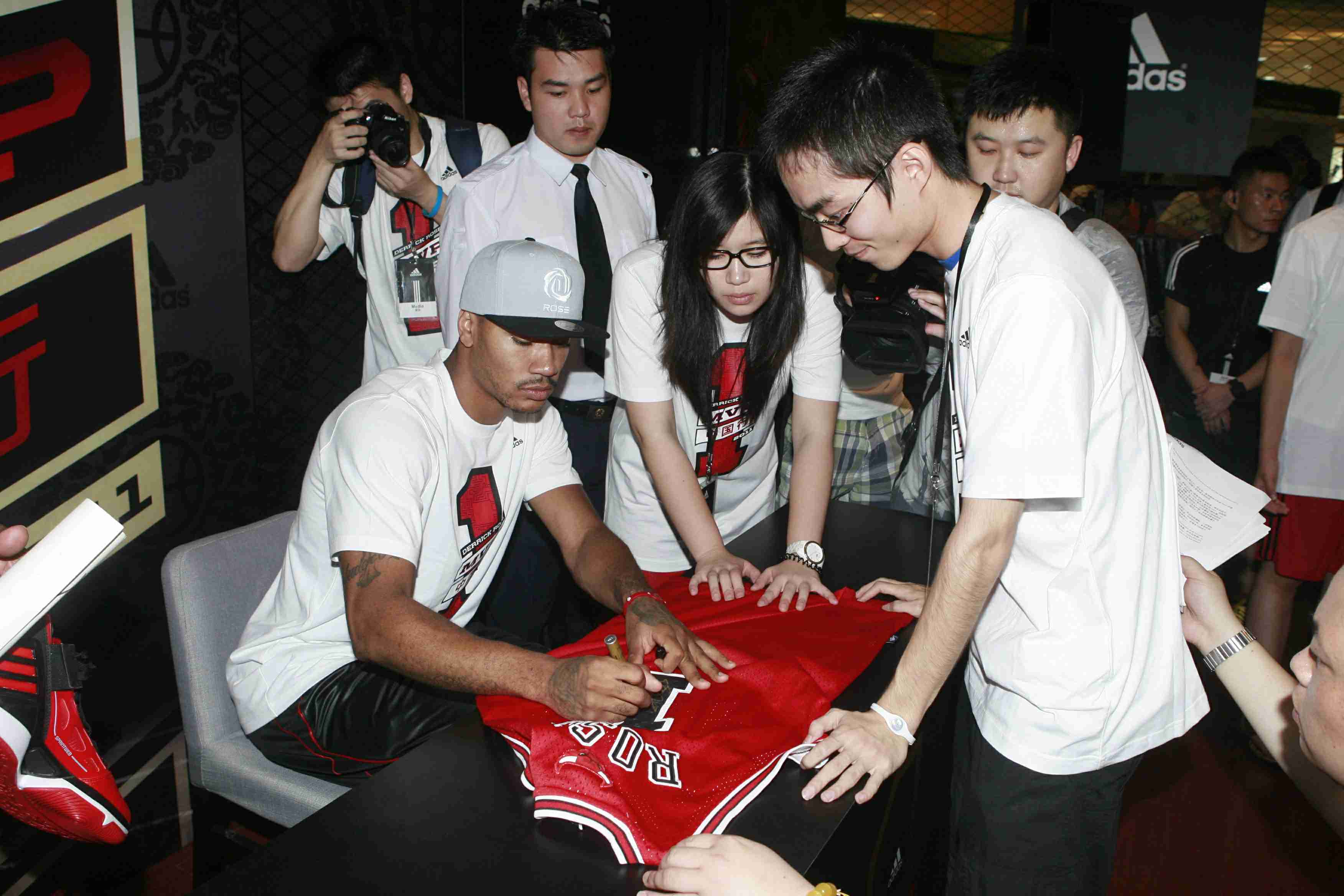 上海2011年8月23日電 /美通社亞洲/ -- 今天,世界領先的運動品牌阿迪達斯旗下的籃球巨星 -- NBA 史上最年輕的 MVP -- 德里克·羅斯空降申城,在上海南京西路新世界城和徐家匯籃球公園內與中國籃球兄弟全傾全力上演了一場輕無敵的速度 PK 大戰(zhàn)。在初訪上海兩年之后,羅斯再度造訪申城。現(xiàn)在的他,已經(jīng)從當年的新秀一躍成為頂尖的 MVP 球員。他的成功不單只因其天賦異稟及對籃球的熱愛,更是源自他在賽場上忘我的投入,賽場下的刻苦訓練,以及對球迷的尊重和熱愛。在上海的活動現(xiàn)場,羅斯不僅與上海球迷分享了他全傾全力的籃球故事,同時為每位購買了最新限量版球鞋 -- 羅斯二代的球迷簽名,在籃球場上更是大展身手,為球迷進行提供 MVP 現(xiàn)場特訓。
