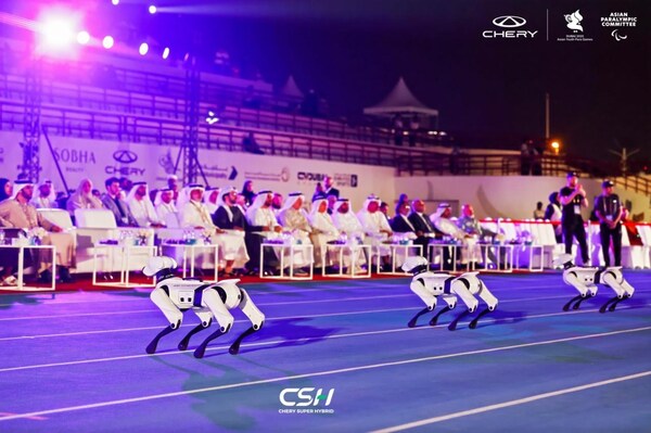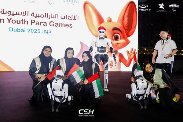 阿聯酋迪拜2025年12月12日 /美通社/ -- 在第五屆亞洲青年殘疾人運動會(Asian Youth Para Games)開幕式上,奇瑞墨甲機器人旗下人形機器人"墨茵"與四足機器人"Argos"攜手登場,作為本次賽事奇瑞指定發言人與科技表演者,完成主持、互動、引導等多重任務,成為本屆殘運會最受關注的科技焦點之一。
