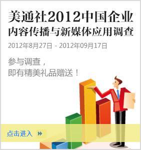 北京2012年8月27日電 /美通社亞洲/ -- 美通社正式啟動2012中國企業內容傳播與新媒體應用調查。本次調查旨在了解中國企業內容傳播的現狀,包括使用渠道、預算投入、未來趨勢,以及中國企業在各種新媒體應用工具、社交媒體平臺的使用情況。此次調查為期三周,將通過電郵、微博、社交網站等多種渠道向企業中從事公關傳播、品牌推廣和市場營銷的人士進行推廣。參加者只要提交有效問卷,就會獲得美通社定制的精美萬用毯。點擊參與http://m.girardschools.com/marketing/survey-2012。