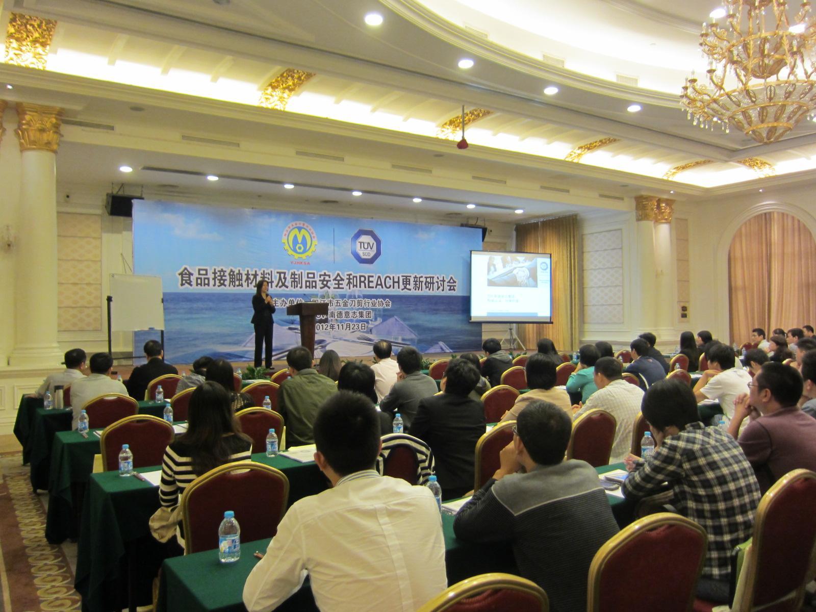 廣東陽江2012年11月26日電 /美通社/ -- 近日,TUV 南德意志集團(以下簡稱“TUV SUD”)與陽江市五金刀剪行業協會強強聯手,在陽江市碧桂園鳳凰酒店舉辦了“食品接觸材料及制品安全和REACH更新研討會”。此次會議,共吸引了包括生產廠家、貿易公司、營銷商企在內的120多名企業代表前來參加。